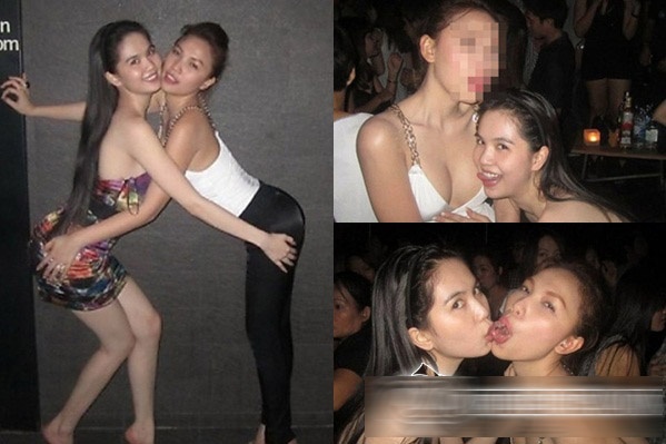 | Ngọc Trinh hồi mới nổi bị tung những tấm ảnh chụp thể hiện những động tác khá "phản cảm" với người mẫu Quỳnh Thư. |