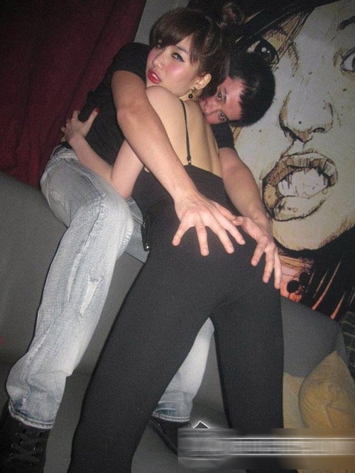 | Ngọc Hân ngồi lên đùi một chàng trai trong bar. |