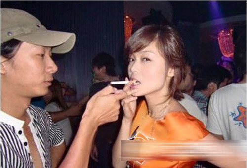 Người mẫu với vẻ "trong sáng" Tuyết Ngọc lại vô tư cầm điều thuốc tạo dáng.