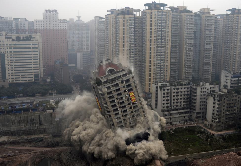 Một tòa nhà 22 tầng bị đánh sập bằng thuốc nổ ở thành phố Trùng Khánh, Trung Quốc hôm 14/1. Người ta cần quỹ đất để xây những tòa nhà quy mô hơn.