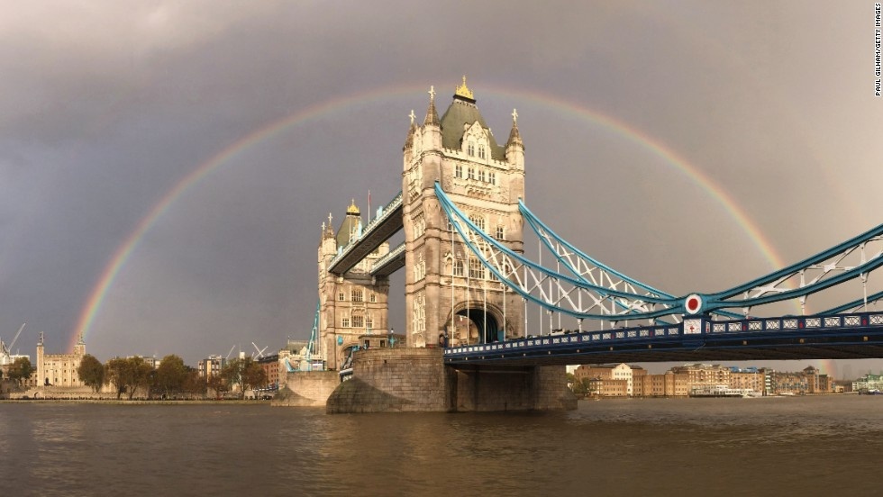 Cầu vồng xuất hiện phía sau Cầu Tháp Luân Đôn (Tower Bridge) ở thủ đô London, Vương quốc Anh hôm 10/11. Đây là công trình kết hợp cầu treo với cầu nâng bắc qua con sông Thames. Ảnh: Getty