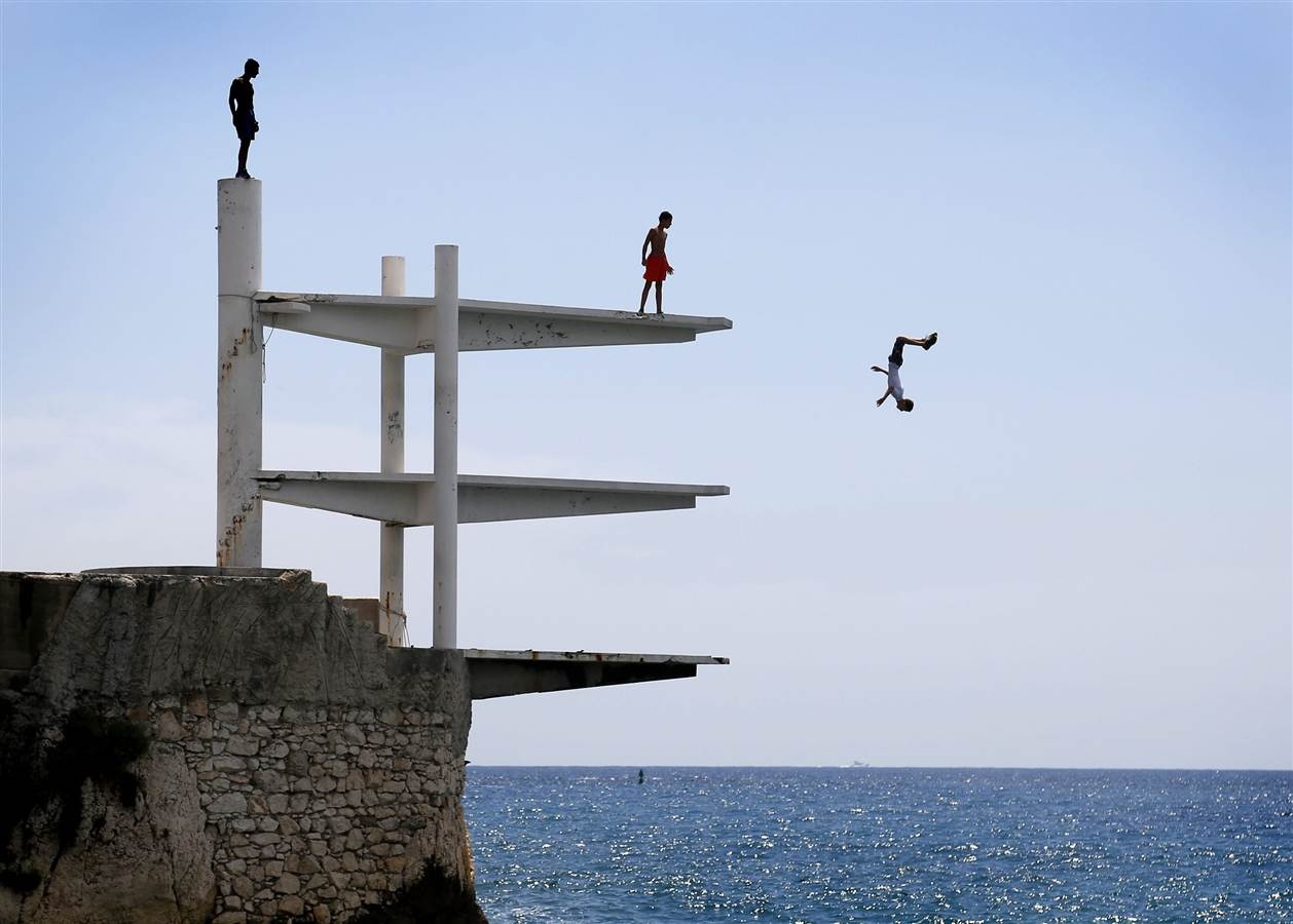 Trẻ em nhảy xuống biển Địa Trung Hải nhằm xua tan cái nóng mùa hè ở Nice, Pháp hôm 21/7. Ảnh: EPA