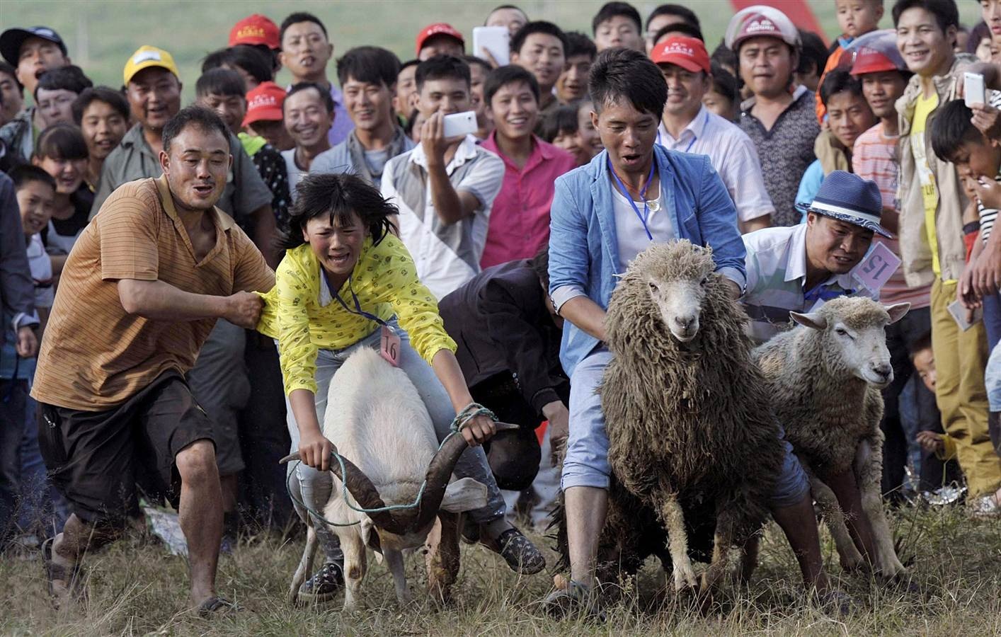 Đông đảo khán giả theo dõi cuộc đua dê và cừu trong lễ hội thường niên ở thị trấn Fengshan, tỉnh Quý Châu, Trung Quốc hôm 26/7. Ảnh: Reuters |