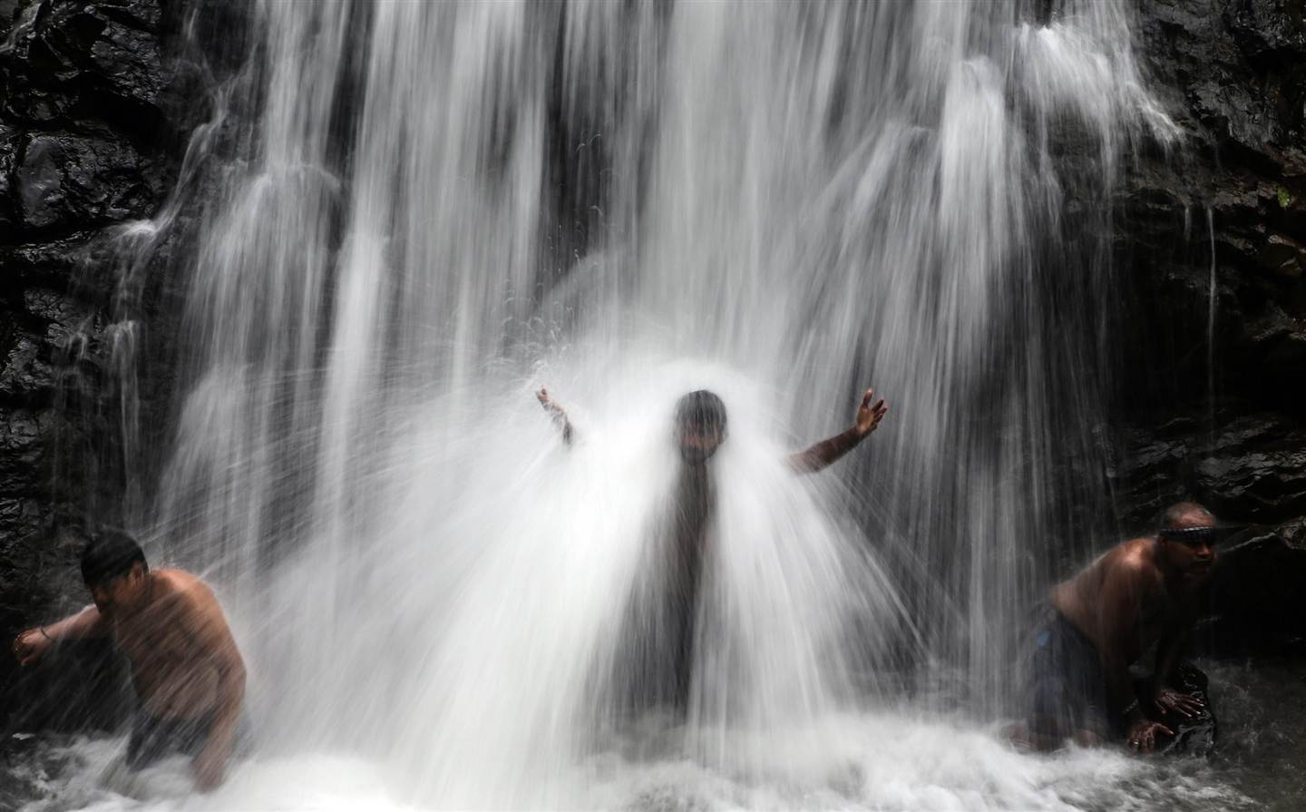 Người dân Ấn Độ tắm mình dưới thác nước Tungareshwar, ngoại ô Mumbai, Ấn Độ hôm 25/7. Ảnh: EPA |