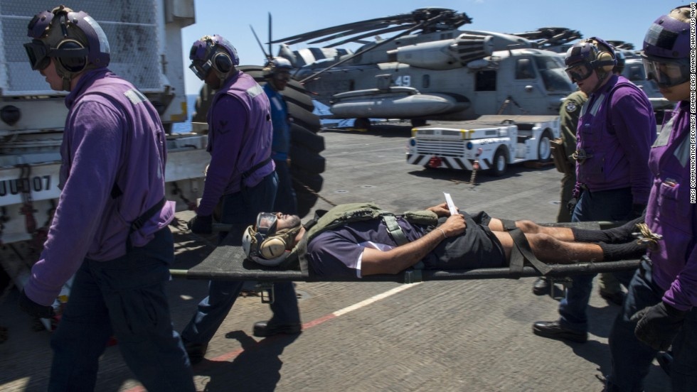 Diễn tập sơ tán binh sĩ bị thương từ trực thăng SH-60 Sea Hawk hôm 18/7. |