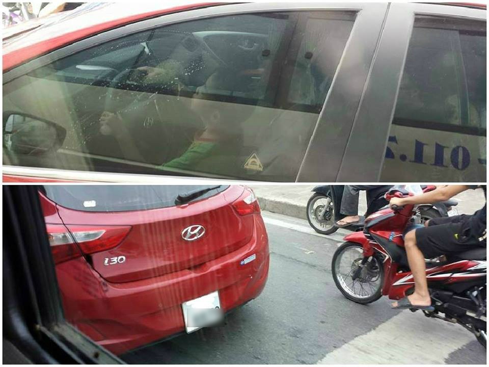 | Người đi đường bắt gặp khoảnh khắc cậu bé khoảng 7 tuổi cầm vô lăng điều khiển xe hơi. Chứng kiến sự việc nguy hiểm này, anh đã dùng điện thoại chụp lại, chia sẻ lên mạng. Phần lớn mọi người đều lên án vị phụ huynh thản nhiên để con trẻ có hành động xem thường tính mạng và vi phạm luật giao thông. Ảnh: B.vn. |
