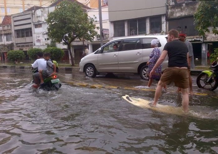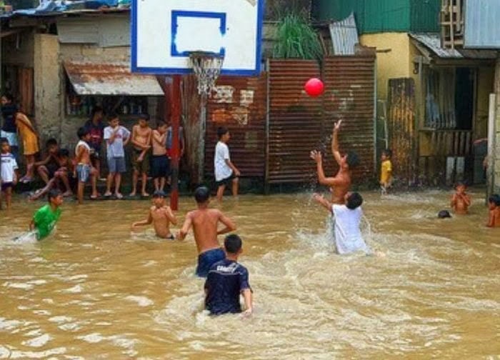 | Vui chơi mùa lũ. |