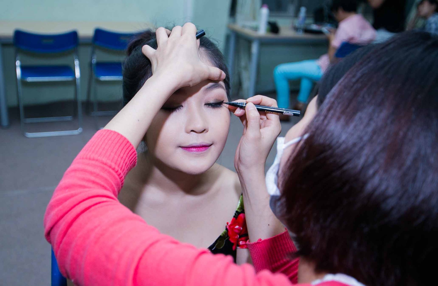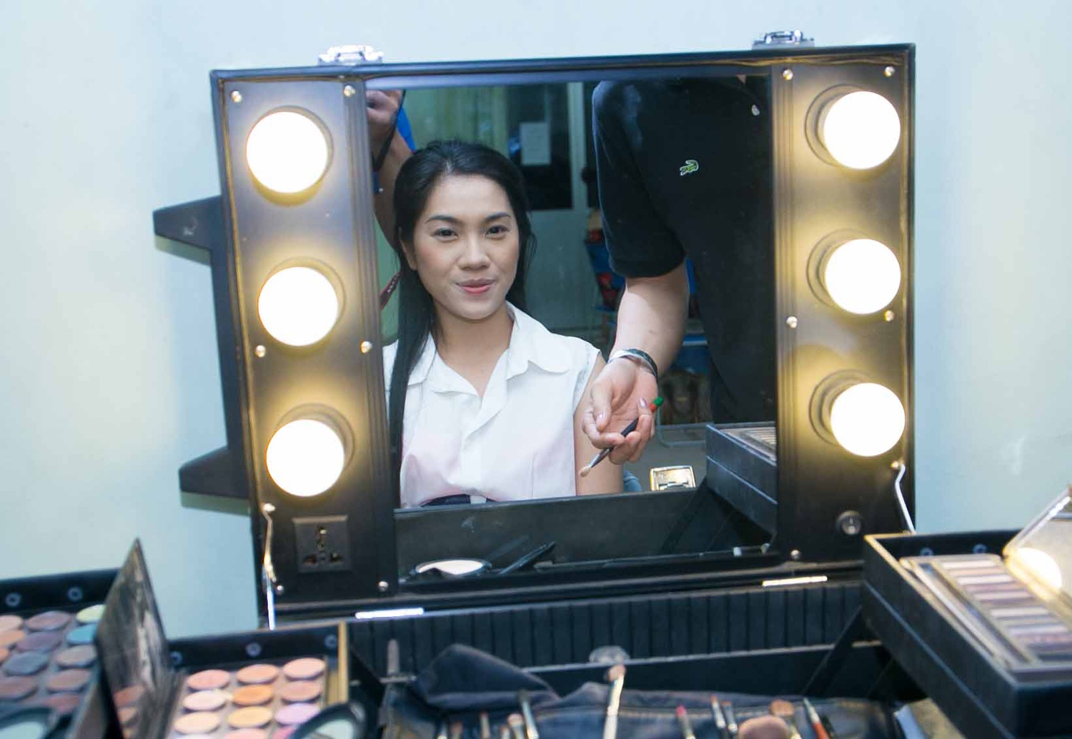 | Vũ Thu Phương trang điểm cho Thảo My. |