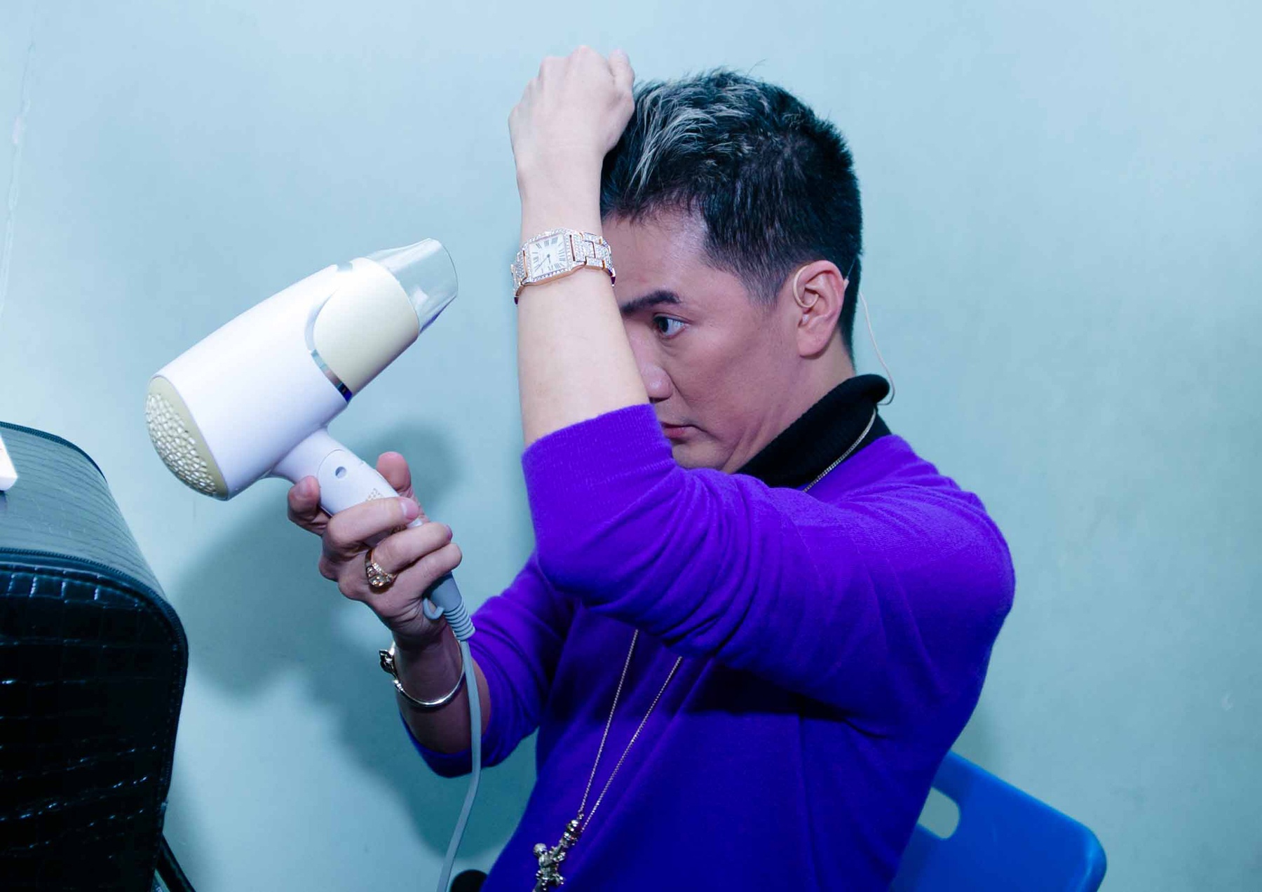 | Anh tự tay sấy tóc cho mình. |