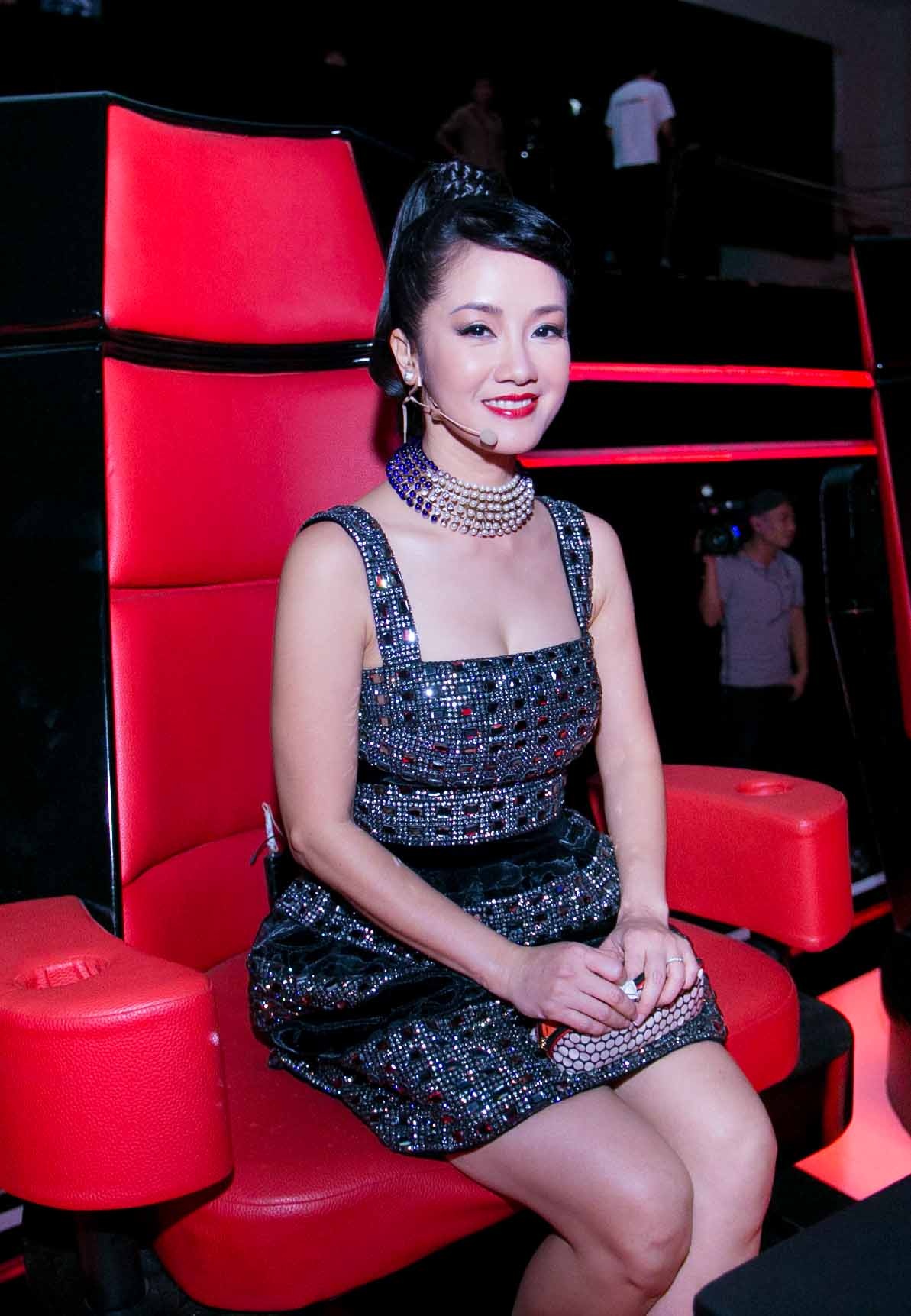 | Hồng Nhung diện váy hoa khi chương trình chưa bắt đầu. |