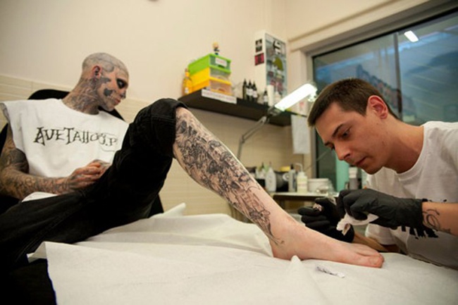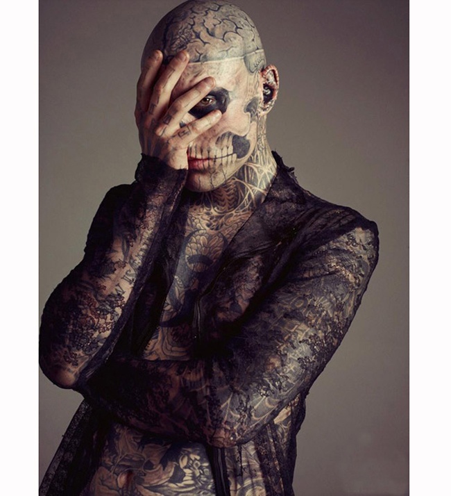 Mang trong mình sở thích kỳ lạ, Rick Genest, một nghệ sĩ kiêm người mẫu thời trang quốc tịch Canada, đã chọn xăm lên cơ thể những hình kỳ dị, biến anh trở thành “xác sống di động”.