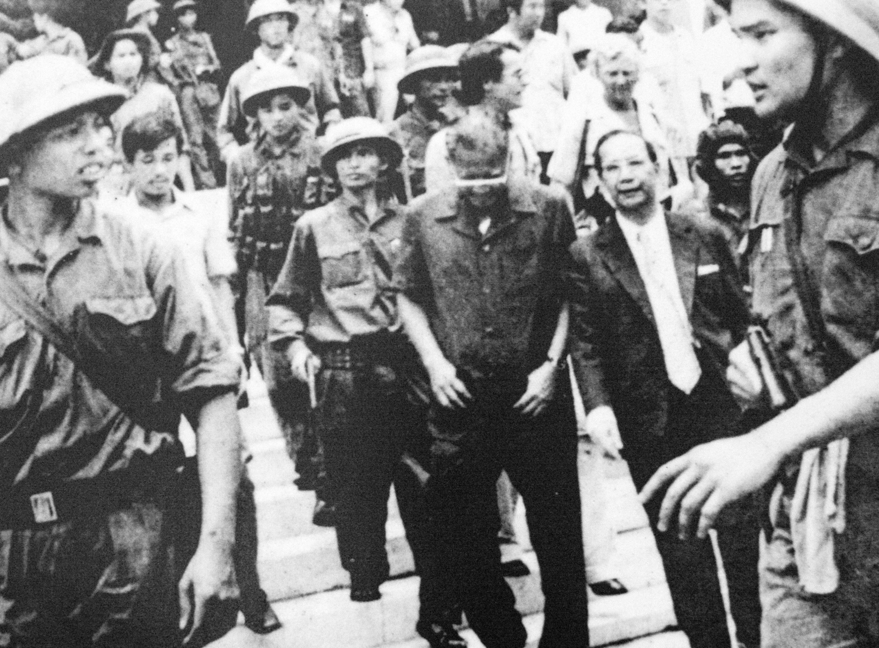 Tổng thống Dương Văn Minh cùng nội các ra trước đài phát thanh tuyên bố đầu hàng vô điều kiện, kết thúc chiến tranh Việt Nam.
