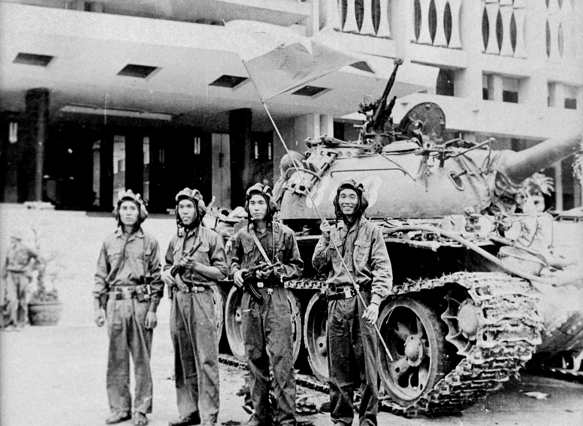 Các chiến sĩ xe tăng 843 trưa 30/4/1975.