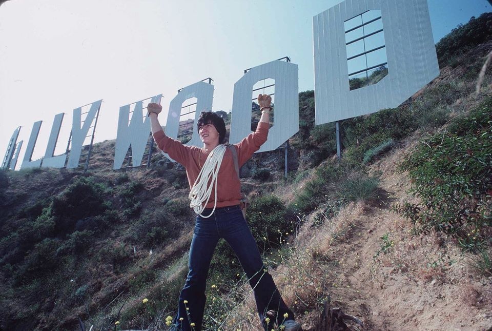 Thành Long ở ngọn đồi Hollywood nổi tiếng. Bộ phim Hollywood đầu tiên của Thành Long là Battle Creek Brawl, ra mắt năm 1980.