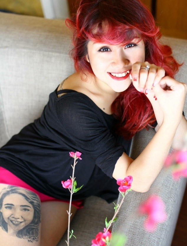 | Cô gái xăm chân dung của chính mình lên chân. Ảnh: K.N. |