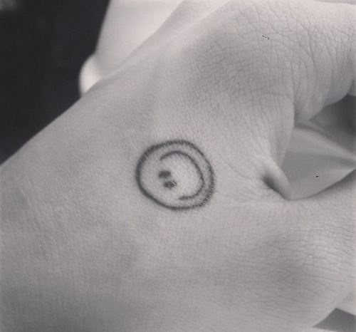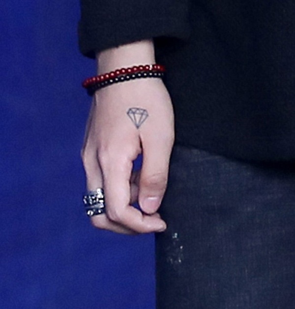 | Tại vị trí giữa ngón tay cái và trỏ của Sơn Tùng M-TP là hình xăm viên kim cương, tương đồng với vị trí hình xăm khuôn mặt cười bên tay trái của G-Dragon. |