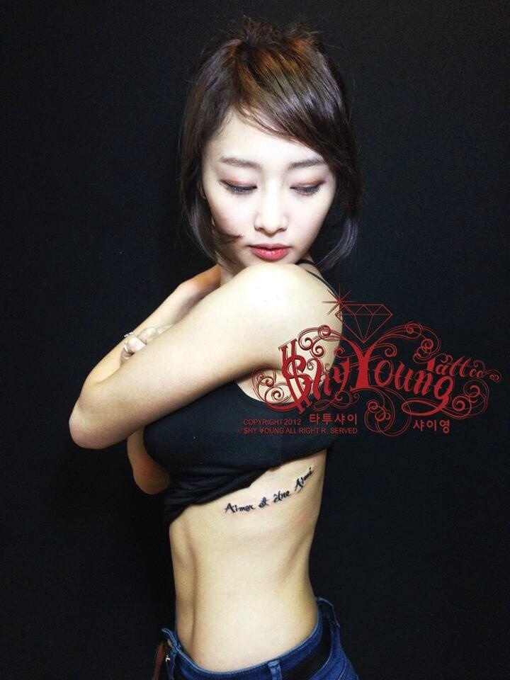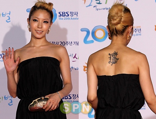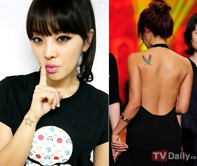 | Cô nàng Narsha nóng bỏng của Brown Eyed Girls có một ngôi sao trên cổ tay và một chú chim khá đáng yêu trên bả vai. |