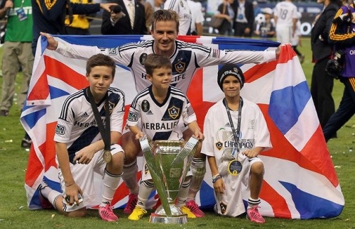 | Cả ba cậu con trai của Becks được hướng theo bóng đá từ khi còn nhỏ và cũng nổi tiếng chẳng kém gì cha. Cậu cả Brooklyn, 14 tuổi là người có tiềm năng nhất. Lối chơi của Brooklyn chịu ảnh hưởng khá nhiều từ David. Cậu bé đã được đào tạo ở nhiều CLB lớn như M.U, Chelsea, QPR và Fulham. Hai cậu em còn lại là Romeo (11 tuổi) và Cruz (9 tuổi) cũng chung niềm đam mê với trái bóng. Mới đây, David Beckham đã quyết định đưa hai cậu con thứ gia nhập học viện đào tạo trẻ của Arsenal. |