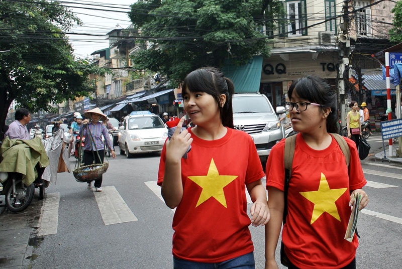 | Rất nhiều người trẻ tuổi trong những ngày này luôn chọn mặc những chiếc áo in hình cờ Tổ quốc để thể hiện lòng yêu nước không có sức mạnh nào có thể ngăn cản. |