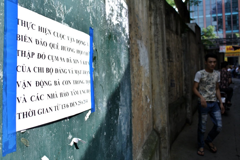 | Thông báo ở một tổ dân phố thuộc phường Giảng Võ về việc quyên góp, ủng hộ chủ quyền biển đảo. |