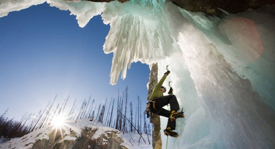 Trèo thác băng, Canada: Thác nước đóng băng vào mùa đông là một khung cảnh tuyệt đẹp. Nhiều người ưa mạo hiểm lại coi đây là một thử thách lý tưởng. Về cơ bản, hoạt động du lịch này giống như leo vách đá, nhưng nguy hiểm hơn, do sự bất ổn và trơn trượt của băng đá. Trèo thác băng đòi hỏi người chơi phải là chuyên gia, do băng có nhiều dạng, chỗ dày, mỏng, mềm, cứng, khó nắm bắt. Ảnh: Canadianalpineguides. |