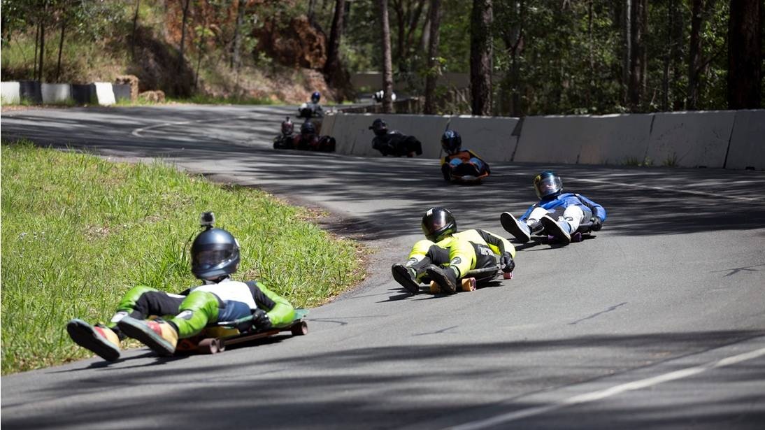 Trượt ván nằm trên phố: Trò chơi này khá giống trượt ván, chỉ khác là người chơi sẽ nằm ngang thay vì đứng thẳng, trong lúc lao xuống đường dốc với tốc độ chóng mặt. Người chơi bắt buộc phải đội mũ bảo hiểm và mặc bộ đồ bảo hộ, nếu không khả năng bị thương do va chạm sẽ tăng cao, do chỉ có chân làm phanh. Ảnh: Naroomanewsonline. |