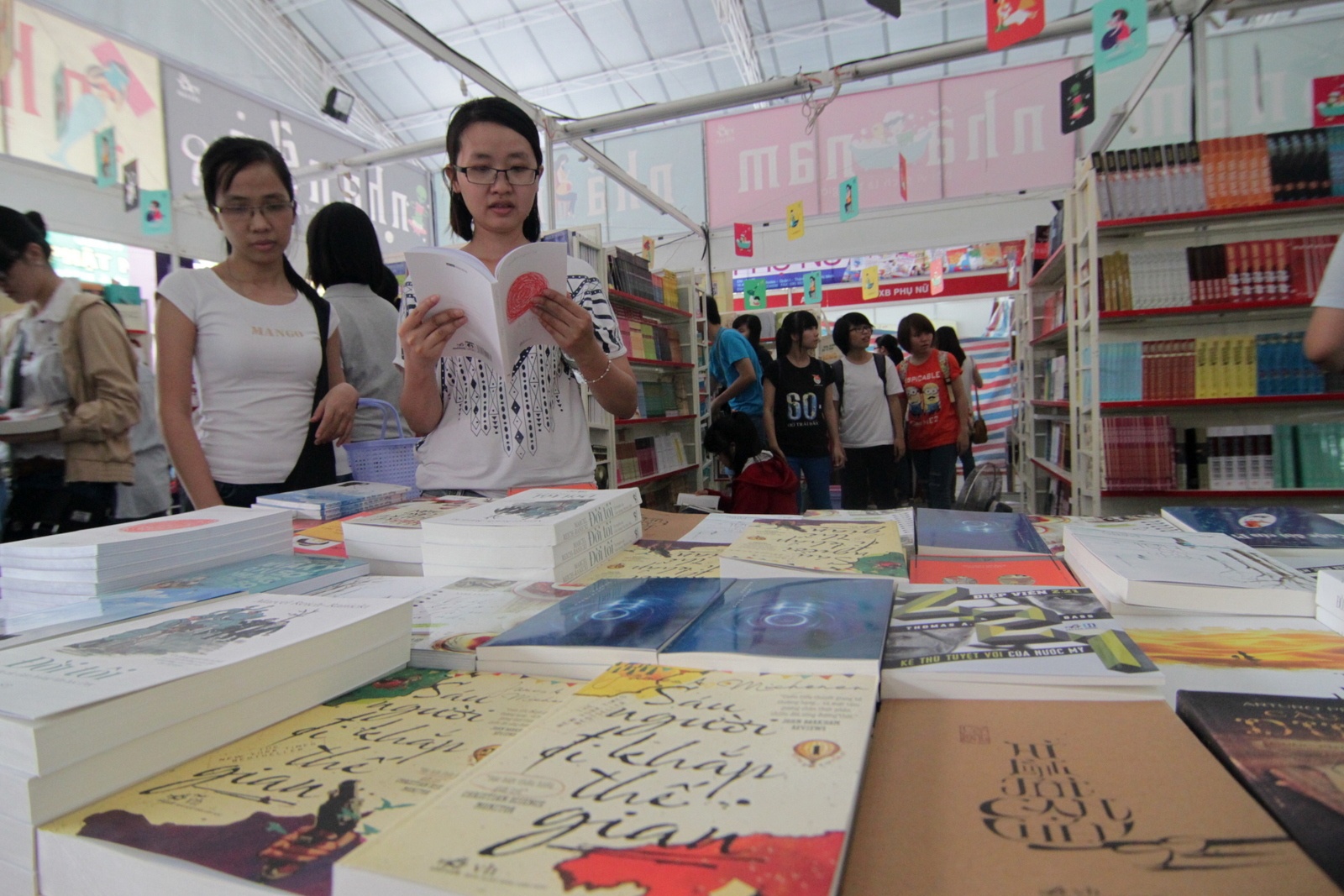 | Chưa khai mạc nhưng đã có nhiều người đến tham quan hội sách. |