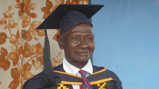 Năm 96 tuổi, ông quyết định đăng ký vào Đại học Presbyterian, Ghana. Dù tuổi cao, nhưng sinh viên đặc biệt này vẫn miệt mài học tập không thua kém các bạn trẻ. Ba năm sau, cụ ông tốt nghiệp với tấm bằng cử nhân.