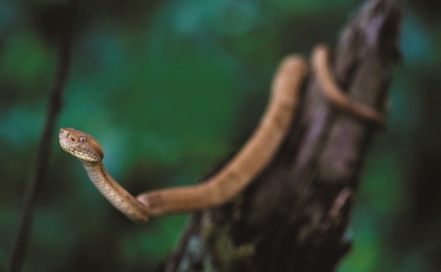 | Rắn hổ lục đầu vàng, loài rắn nguy hiểm và có nguy cơ tuyệt chủng cao nhất thế giới, cũng hiện diện ở đây, với mật độ dày đặc, từ 1 tới 5 con trên mỗi m2. |