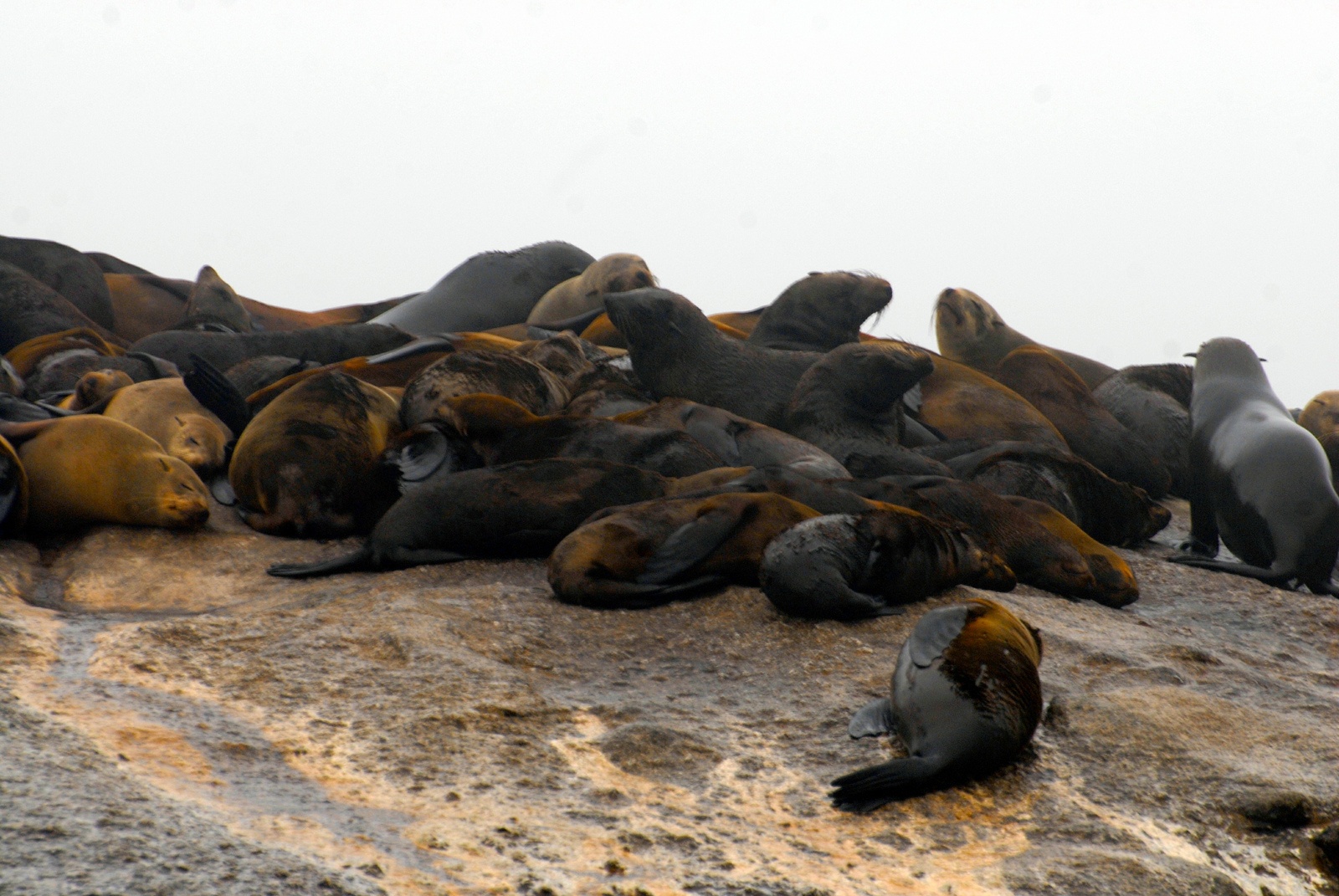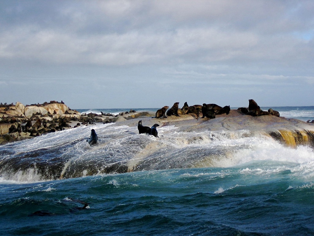 | Hòn đảo đá nằm ngoài khơi bờ bển Cape Town này bám dính đầy lông của hải cẩu, hằng ngày hàng trăm con hải cẩu nằm trên bãi đá phơi mình dưới ánh nắng mặt trời. |