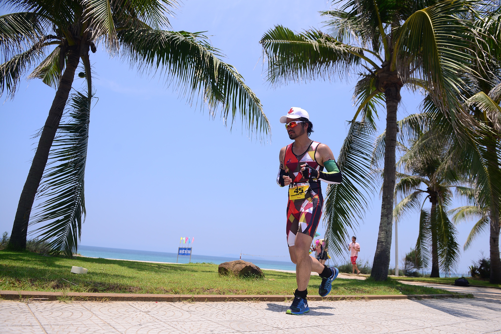| Trịnh Bằng (số báo danh 37) là vận động viên đầu tiên trong số các thí sinh đại diện cho Việt Nam bước vào phần thi chạy 21,1 km. Người đàn ông 43 tuổi mang quốc tịch Mỹ nhưng luôn đăng ký đại diện cho Việt Nam ở các cuộc thi thể thao phối hợp. Ông là một trong số những cá nhân góp công lớn đưa Ironman 70.3 lần đầu tiên về Việt Nam. |