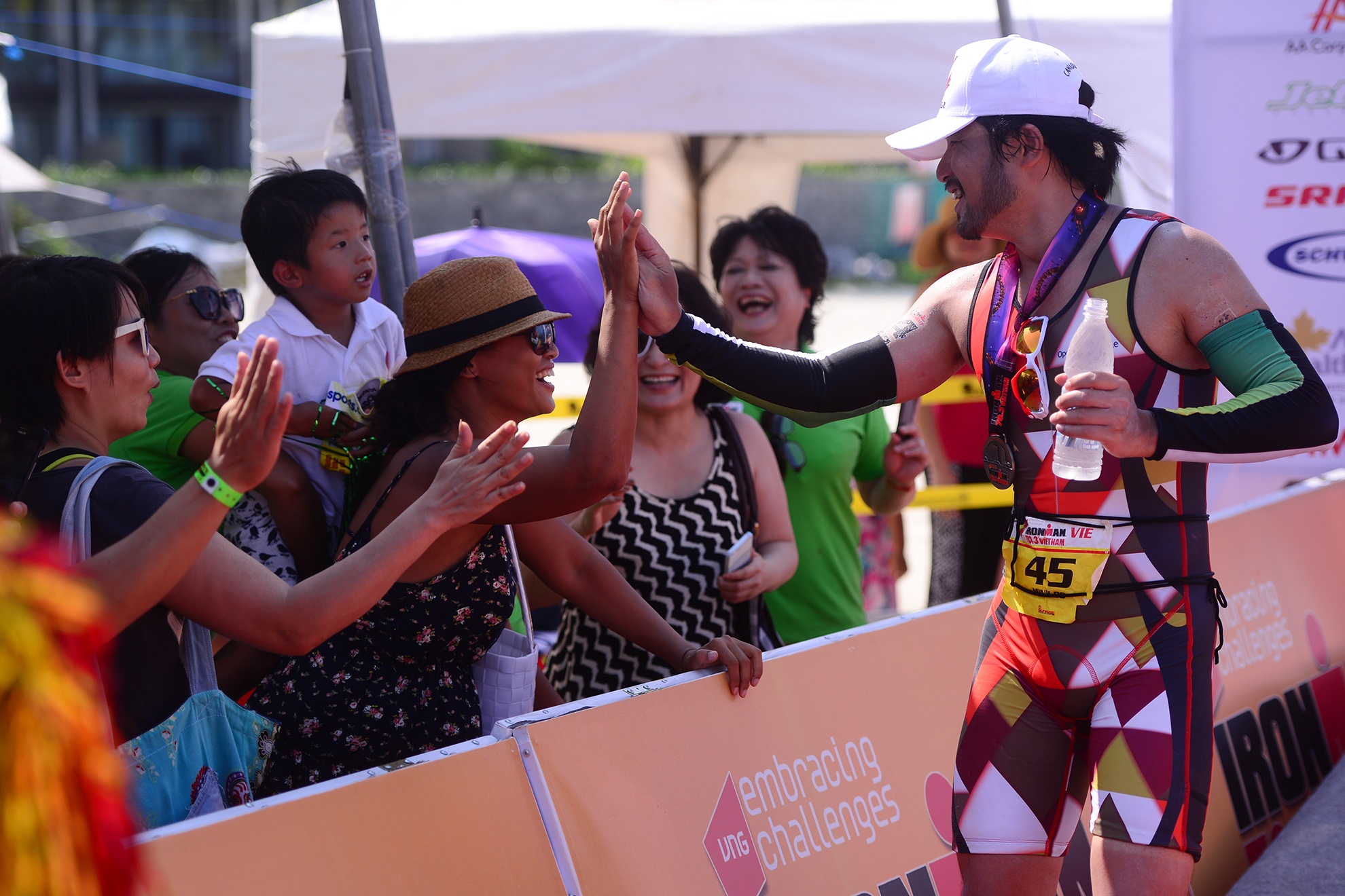 | Vận động viên Nguyễn Anh Tuấn ( số báo danh 195, tham dự đầy đủ cả ba nội dung thi dành cho VĐV nghiệp dư) là người Việt đầu tiên về đích nội dung bơi 1,9 km. Ở nội dung đua xe đạp, xe anh thủng lốp và nổ săm hai lần nên phải dừng cuộc chơi giữa chừng. |