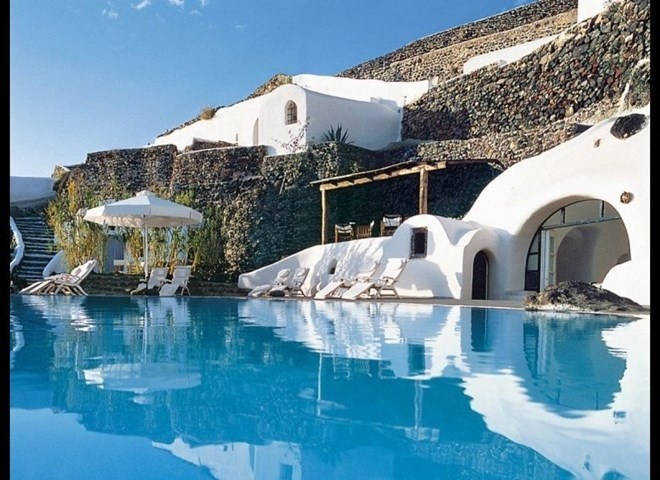 | Khách sạn Perivolas (Hy Lạp): Để tới khu resort ấn tượng này, bạn cần phải đi tàu. Nó cập bến tại khu mỏ đá bọt có từ thế kỷ 19. Tới đây, du khách được tận hưởng một bầu không khí mát mẻ, những giờ nghỉ ngơi sảng khoái ở bãi biển riêng và bể bơi của khách sạn. |
