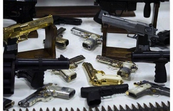 Người ta cũng phát hiện những khẩu súng lục Desert Eagles dát vàng với trị giá khoảng 2.150 USD/khẩu trong bộ sưu tập của Sanchez. Ảnh: Therichest |
