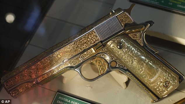 Khẩu súng lục của trùm ma túy Mexico Alfredo Beltran Leyva, người còn có biệt danh El Mochomo. Hiện tại, khẩu súng đang được lưu giữ tại bảo tàng quân sự ở Mexico. Ảnh: AP |