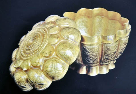 | Chiếc hộp vàng ròng tìm thấy ở Trại Lốc, nơi có quần thể lăng mộ vua Trần |