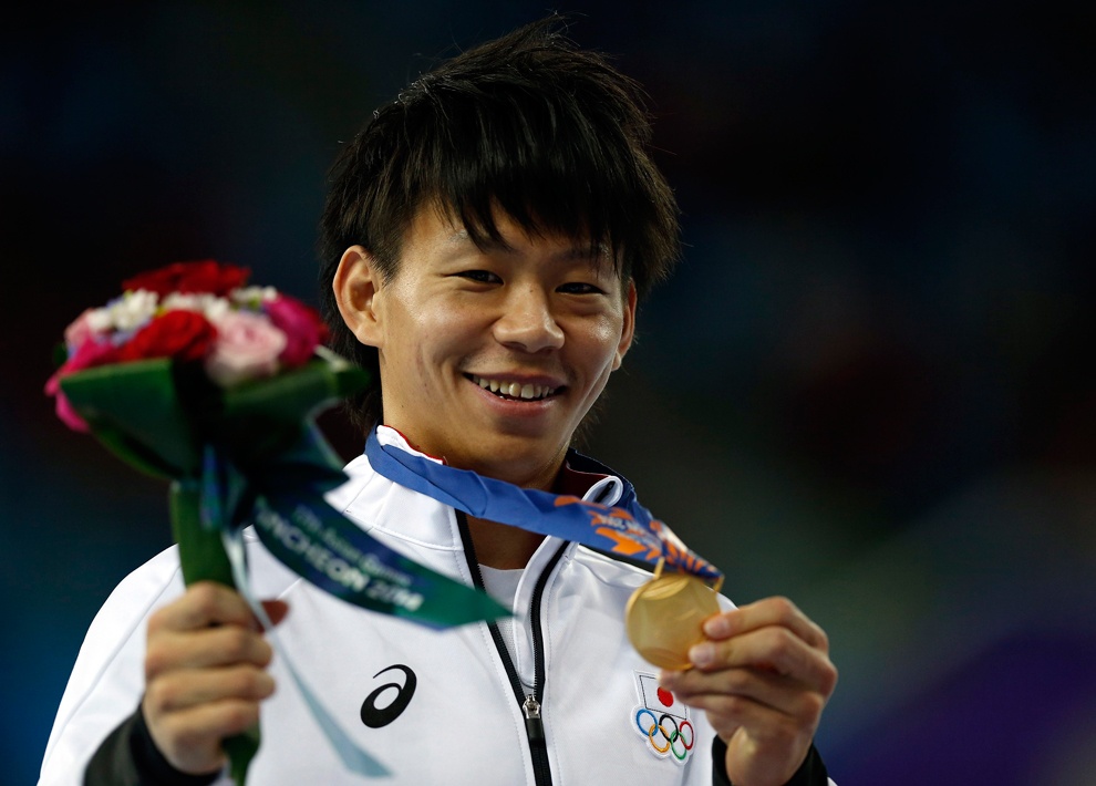 | Nụ cười chiến thắng của VĐV Masayoshi Yamamoto (Nhật Bản) sau khi anh đạt điểm số cao nhất ở nội dung ngựa tay quay cá nhân nam. |