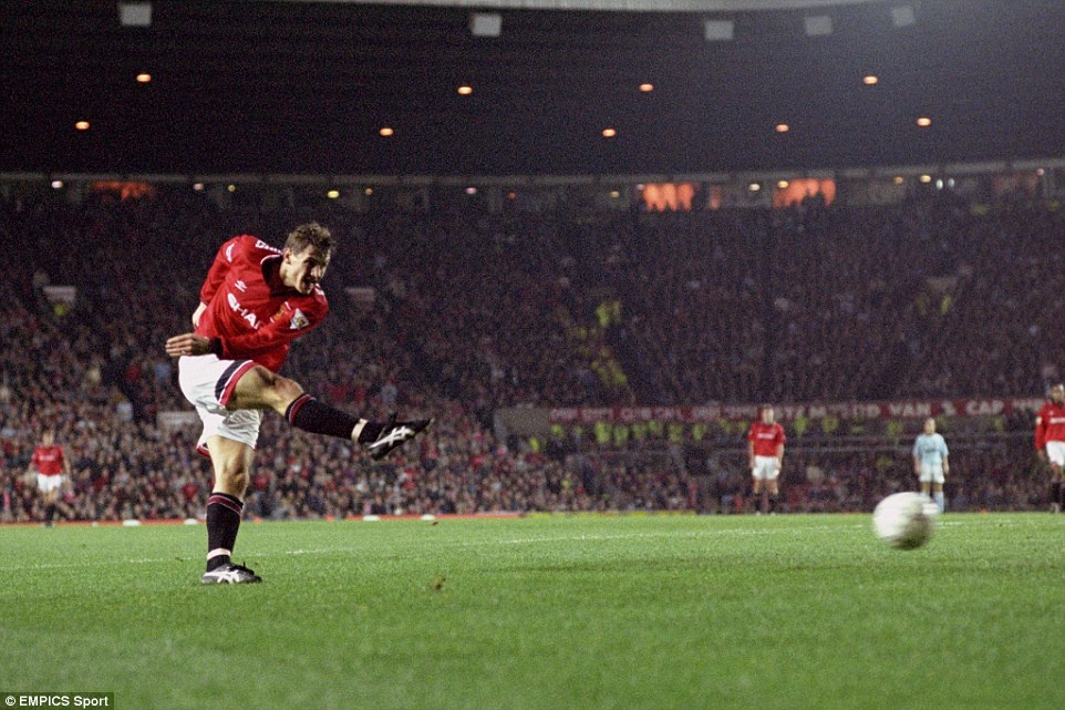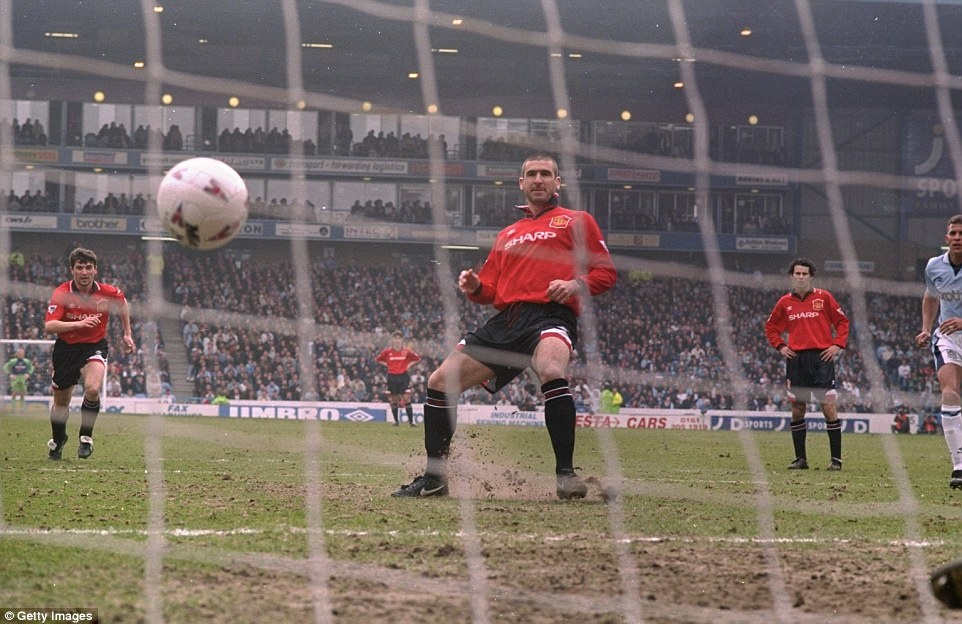 | Eric Cantona mở tỷ số trên chấm phạt đền ở chiến thắng 3-2 của M.U ngay tại Main Road (mùa giải 1995/96). Đây cũng là mùa giải buồn - vui chia nửa thành Manchester khi Quỷ đỏ đăng quang ngôi vô địch, trong khi Man Xanh phải xuống hạng. |