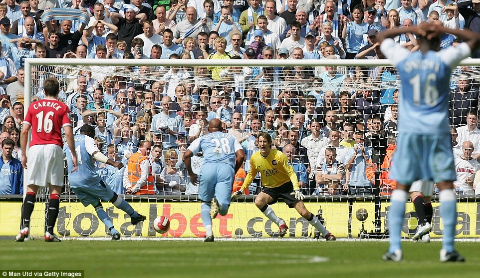 | Thủ thành Edwin van der Sar giúp M.U thoát thua ở tình huống đối mặt với Darius Vassell trên chấm phạt đền trong chuyến hành quân tới City of Manchester (mùa giải 2006/07). Bàn thắng sau đó cũng trên chấm 11 m của Cristiano Ronaldo giúp Quỷ đỏ thắng 1-0, qua đó góp phần mang về chức vô địch Premier League cho đội chủ sân Old Trafford. |