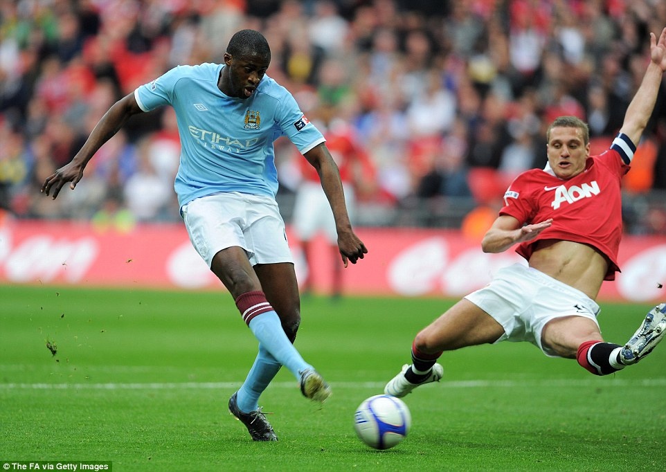 | Yaya Toure ghi bàn thắng duy nhất giúp Man City hạ gục M.U tại bán kết cúp FA (2010/11). Một tháng sau đó, The Citizens tiếp tục đánh bại Stoke City tại Wembley để giành chức chiếc cúp đầu tiên sau 35 năm chờ đợi. |