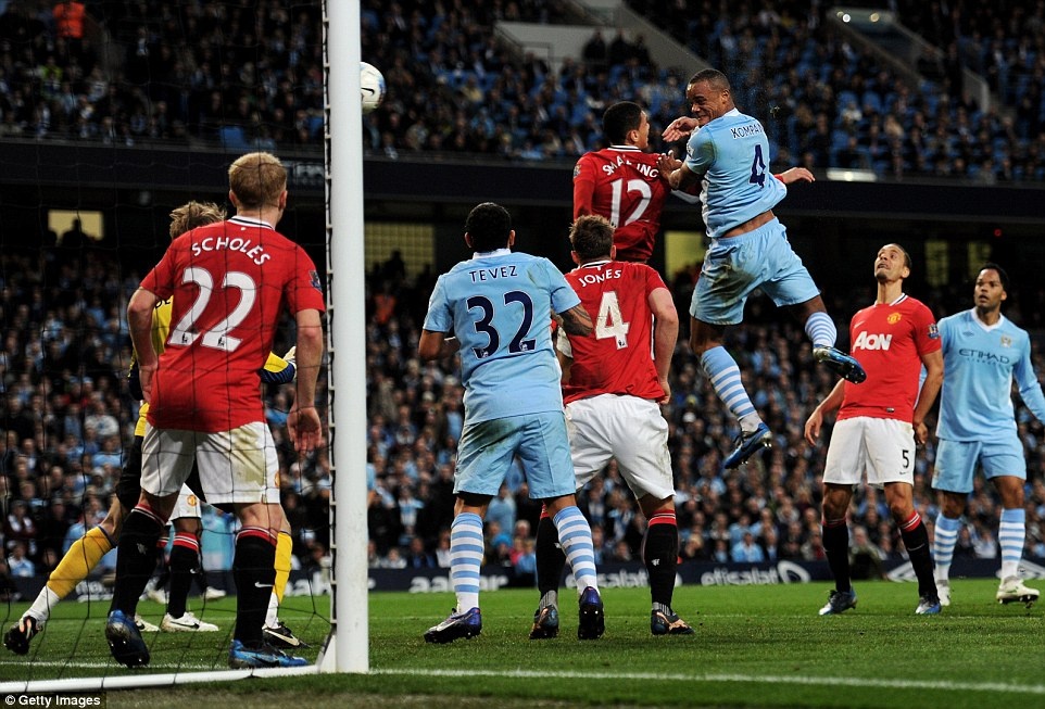 | Thủ quân Vincent Kompany đánh đầu mang về chiến thắng 1-0 cho Man City ở cuối mùa giải 2011/12. Chiến thắng trước Quỷ đỏ tạo động lực giúp Man Xanh dần vượt mặt M.U trên BXH, để rồi chiến thắng kịch tính trước QPR ở vòng đấu cuối cùng giúp The Citizens lần đầu tiên đăng quang giải đấu cao nhất xứ sở sương mù sau 44 năm. |
