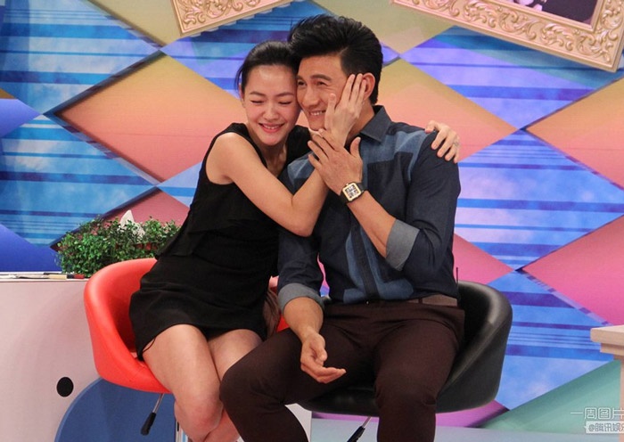 | Có vẻ như Ngô Kỳ Long không mấy mặn mà với cái ôm an ủi của Từ Hy Đệ. Đây là hình ảnh của cặp đôi trong chương trình Khang Hy tới phát sóng ngày 29/8. |