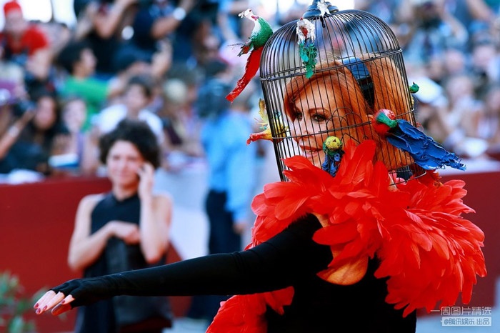 | Nữ diễn viên Marina Ripa di Meana với thời trang "độc" trên thảm đỏ liên hoan phim Venice lần thứ 70 cuối tháng 8. |