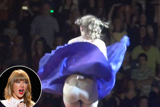 | Đứng đúng chỗ quạt gió đã khiến Taylor Swift tái hiện cảnh tốc váy của Marilyn Monroe ngay trên sân khấu, khi đang say sưa trình diễn ca khúc You Belong With Me. Đáng tiếc cho Taylor Swift là cô không nhanh tay bằng "quả bom sex" quá cố nên đã phô trọn phần dưới trước mắt hàng ngàn khán giả. |