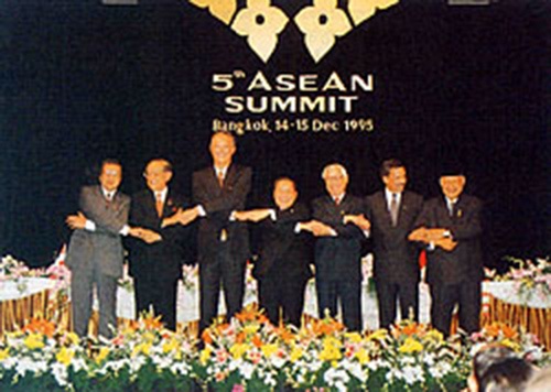 Trong ngày 14 và 15/12/1995, Thủ tướng Võ Văn Kiệt cùng 6 nhà lãnh đạo các nước thành viên khác của ASEAN tham dự Hội nghị cấp cao lần thứ 5 của khối diễn ra tại Bangkok, Thái Lan. Ảnh: Chinhphu.vn |