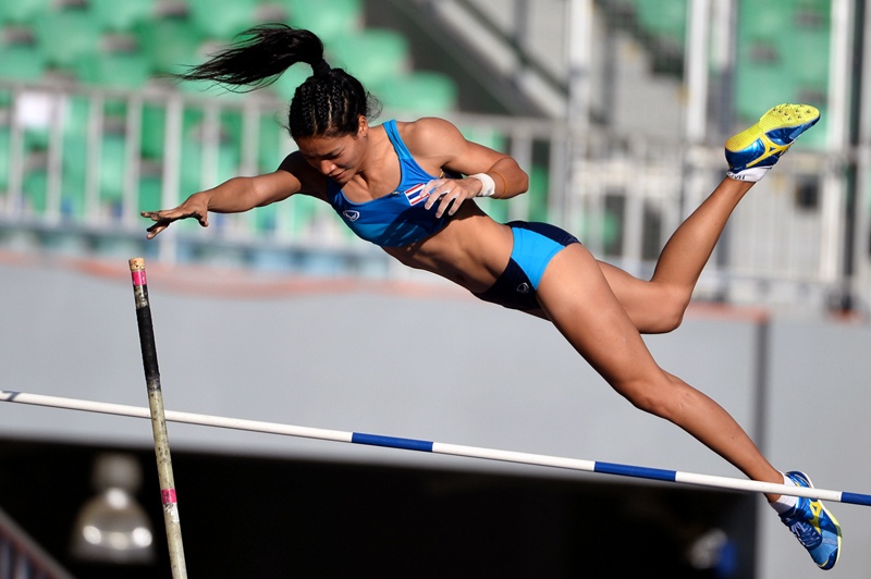 | Động tác qua xà hoàn hảo của VĐV nhảy sào Thái Lan. Tại SEA Games lần này, Thái Lan vẫn áp đảo ở các nội dung điền kinh - môn thi đấu cơ bản của Olympic. |
