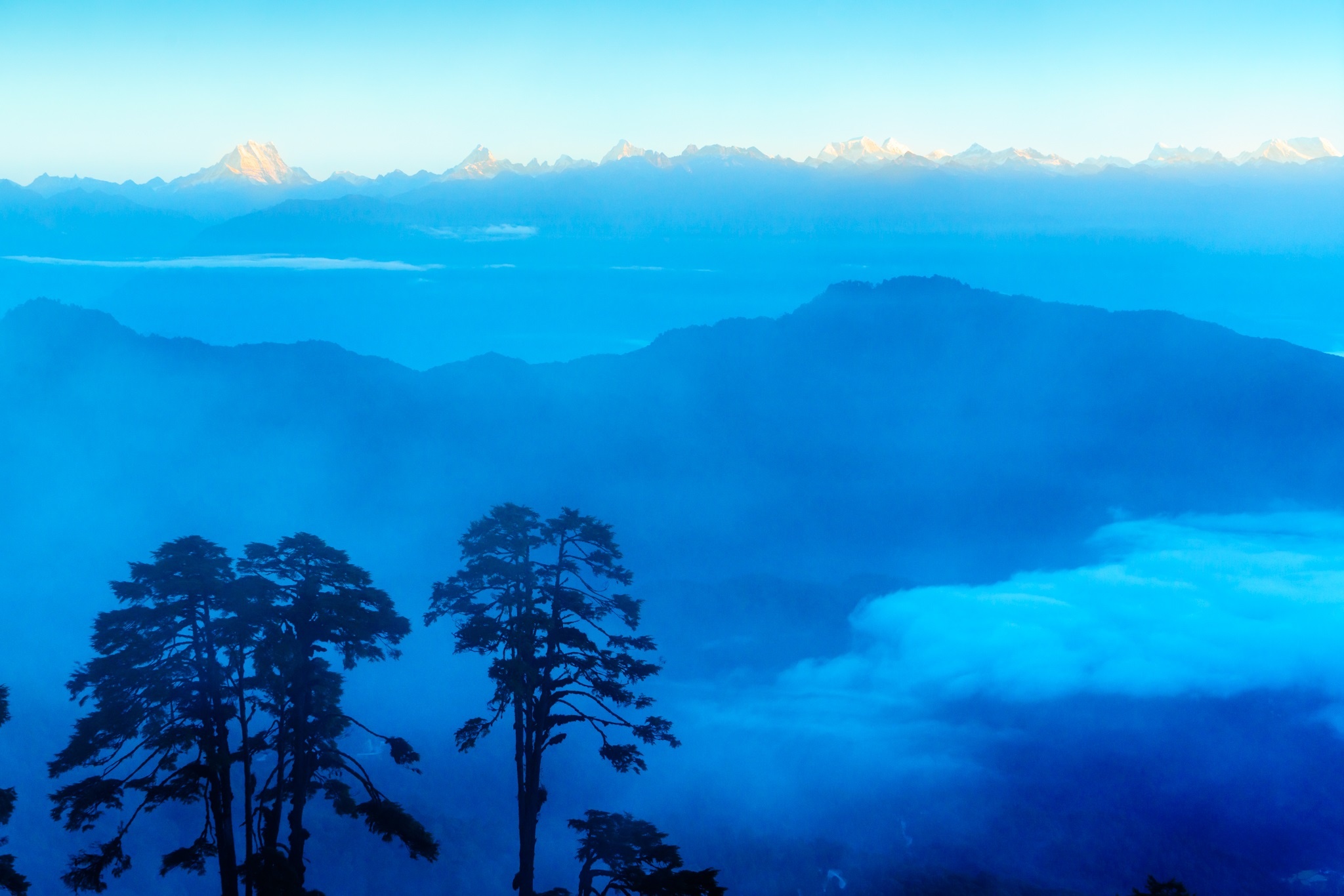 | Giây phút cảnh vật xoay chuyển nhanh chóng trong ánh bình minh ở đèo Dochula. Ảnh: Nguyễn Thanh Tùng. |
