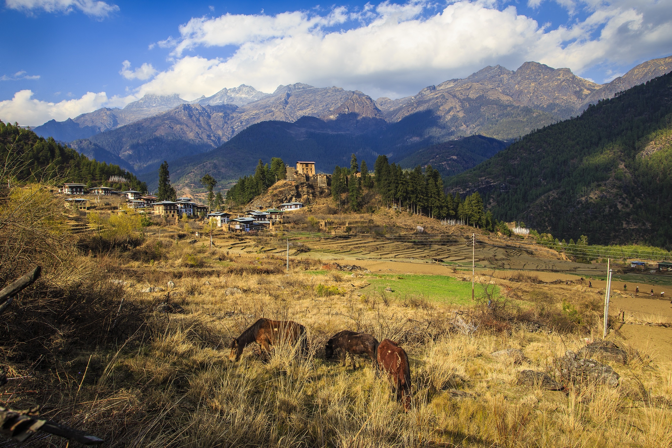 | Làng Radi ở phía đông bắc Bhutan được mệnh danh là thảm vàng hay giỏ lúa, bởi cấu trúc ruộng bậc thang trên núi uốn lượn bao quanh ngôi làng. Ảnh: Nguyễn Thanh Tùng. |
