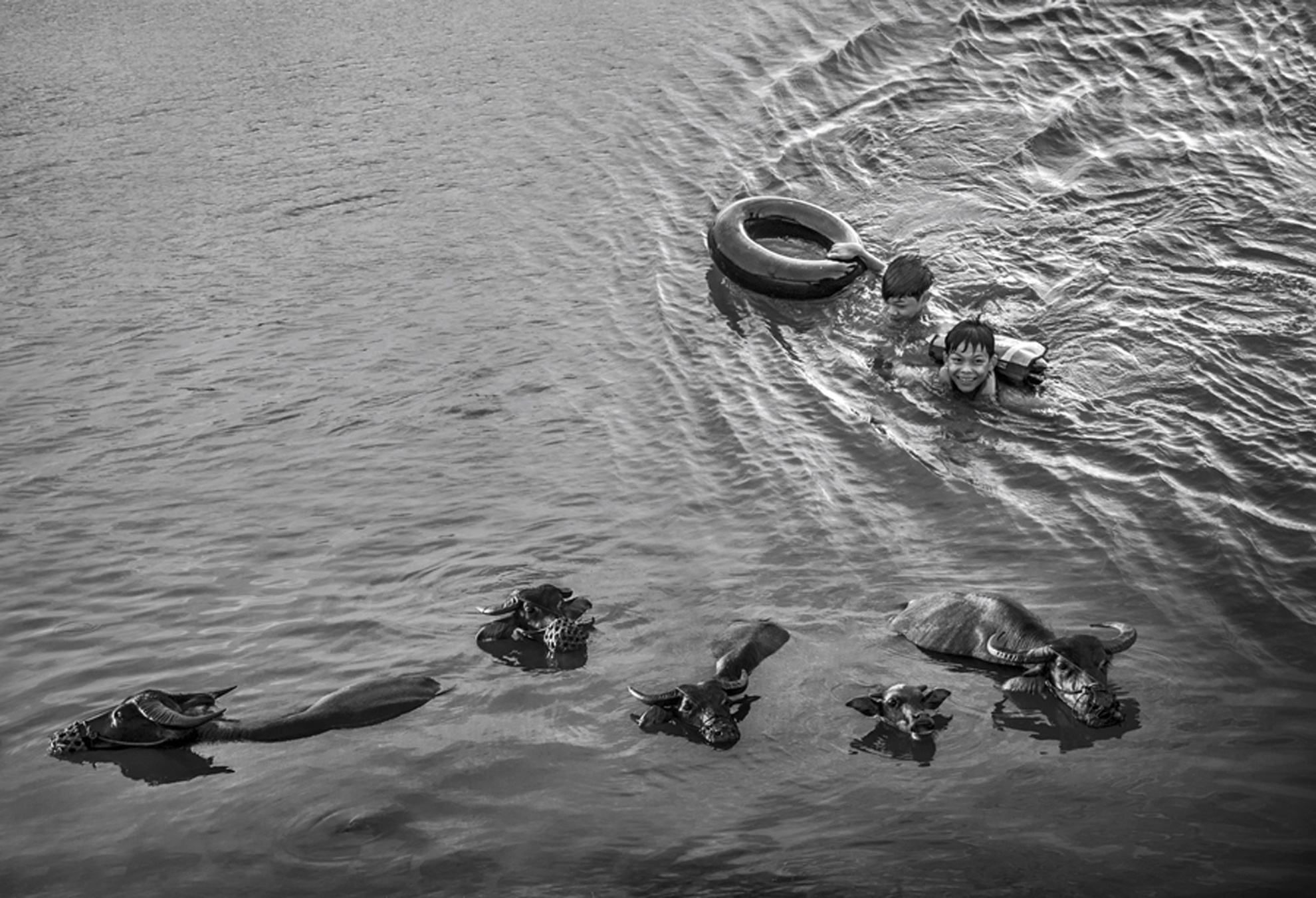 | Tác phẩm "Cuộc sống trên sông". Ảnh: Nguyễn Thị Quyên. |