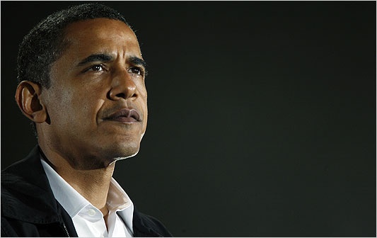 Giây phút trầm tư của ứng cử viên đảng Dân chủ trong một cuộc mít tinh tại ĐH North Carolina, Charlotte vào năm 2008, sau khi biết tin bà ngoại qua đời. Ảnh: New York Times